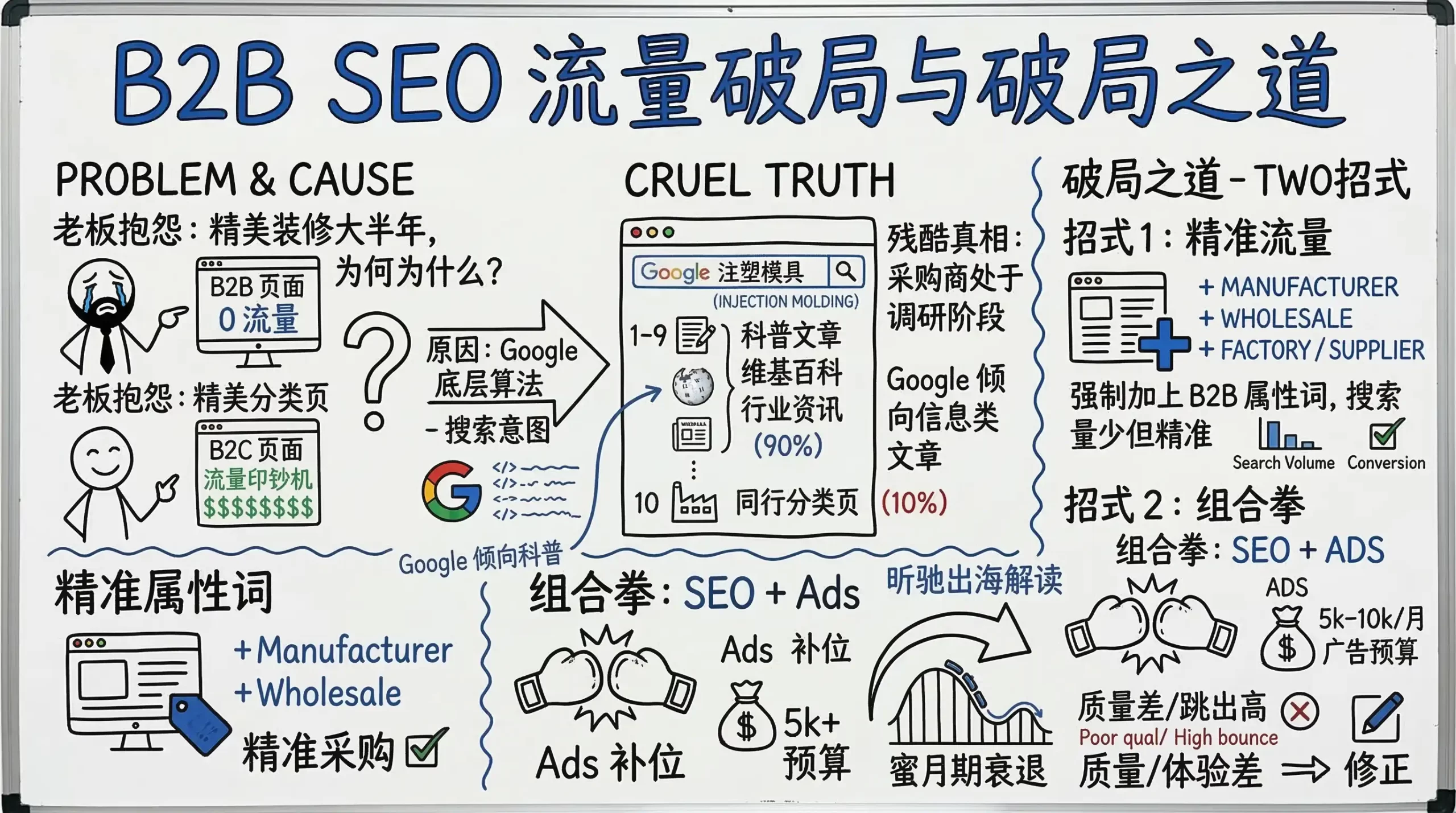 其实根本不是技术的问题,而是 Google 的底层算法逻辑(搜索意图)决定了 B2B 分类页的宿命。今天这篇,我就彻底解开这个 B2B 的流量死局。